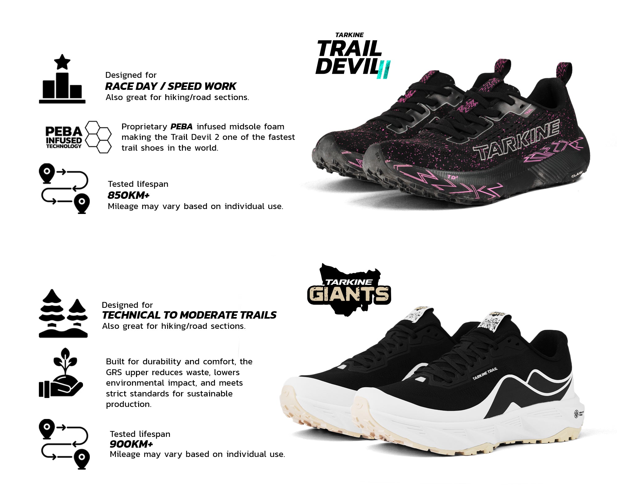 Global Recycled Standard (GRS) mesh upper with protective TPU overlays.